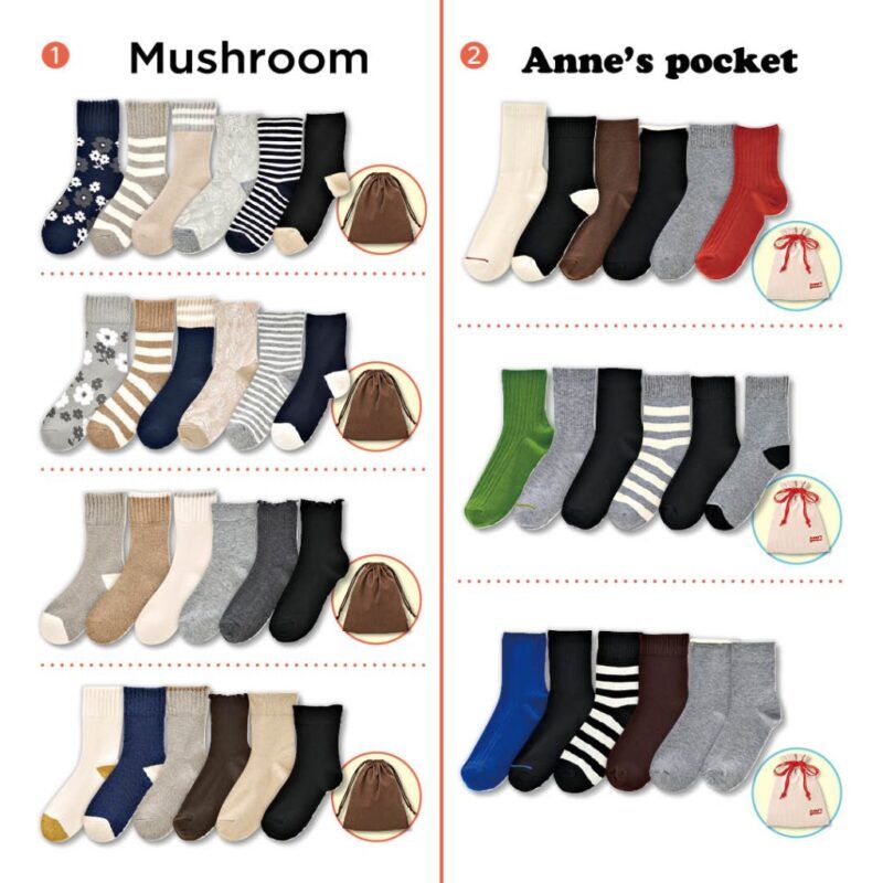 レディース ハッピーバッグ Mushroom靴下6点セット 1,000円(税込 1,100円)