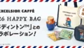 内容 「オーバーオールマスコット(3種のうちランダムで1つ)」「ビスケットボトル」「カフェで使えるクーポンチケット2,000円分(500円×4枚)」