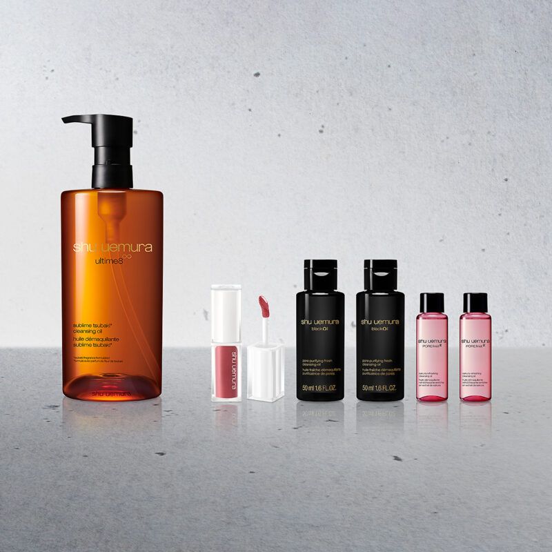 ナノミセル テクノロジーと美容成分約94%配合の高機能土台クレンジング オイル「アルティム8∞」。<シュウ ウエムラ>最高峰のプレミアム クレンジングに毛穴詰まりをすっきり洗い上げる「フレッシュ サクラ クレンジング オイル」をセットに。