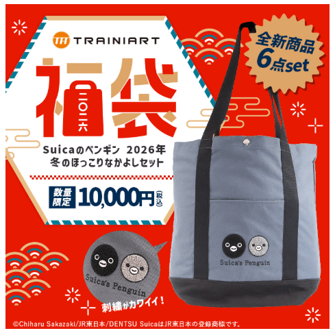 TRAINIARTオリジナルのSuicaのペンギングッズが入った全品新商品の福袋です。