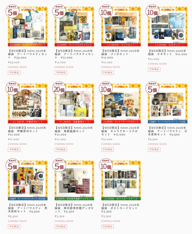 - 【WEB限定】hmm,2026年福袋 アートバラエティ 日本美術セット ¥5,500
