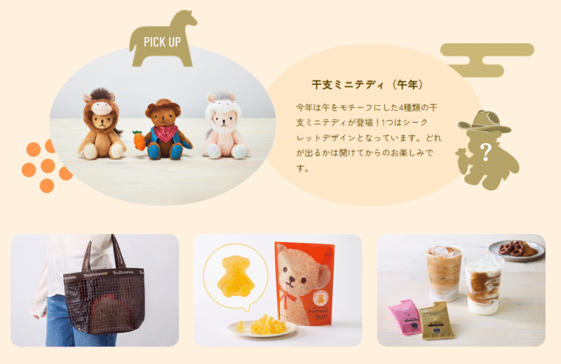 2026年は午をモチーフにした4種類の干支ミニテディが登場!1つはシークレットデザインとなっています。どれが出るかは開けてからのお楽しみです。