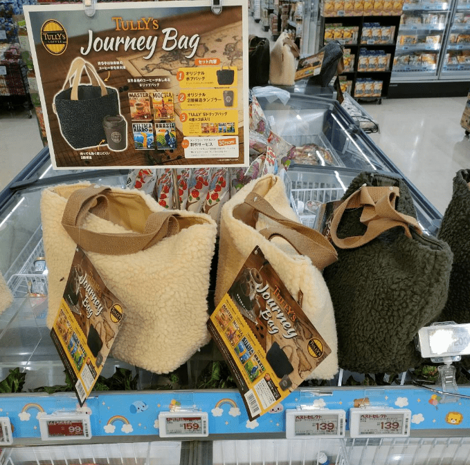 スーパー限定のハッピーバッグで、ジャーニーバッグも11月後半から半場敷いています。