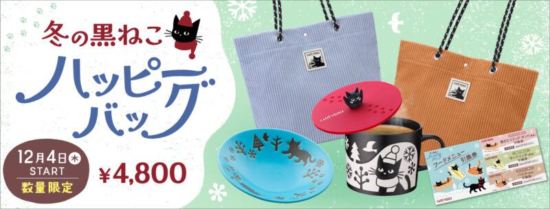 今年で4年目!テーマは「冬のカフェタイム」おうち時間も黒ねこと一緒に過ごせる豪華5点セット!