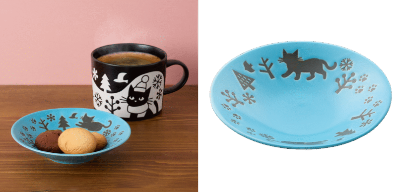 冬の自然を満喫する黒ねこがキュートな「美濃焼 黒ねこ小皿」