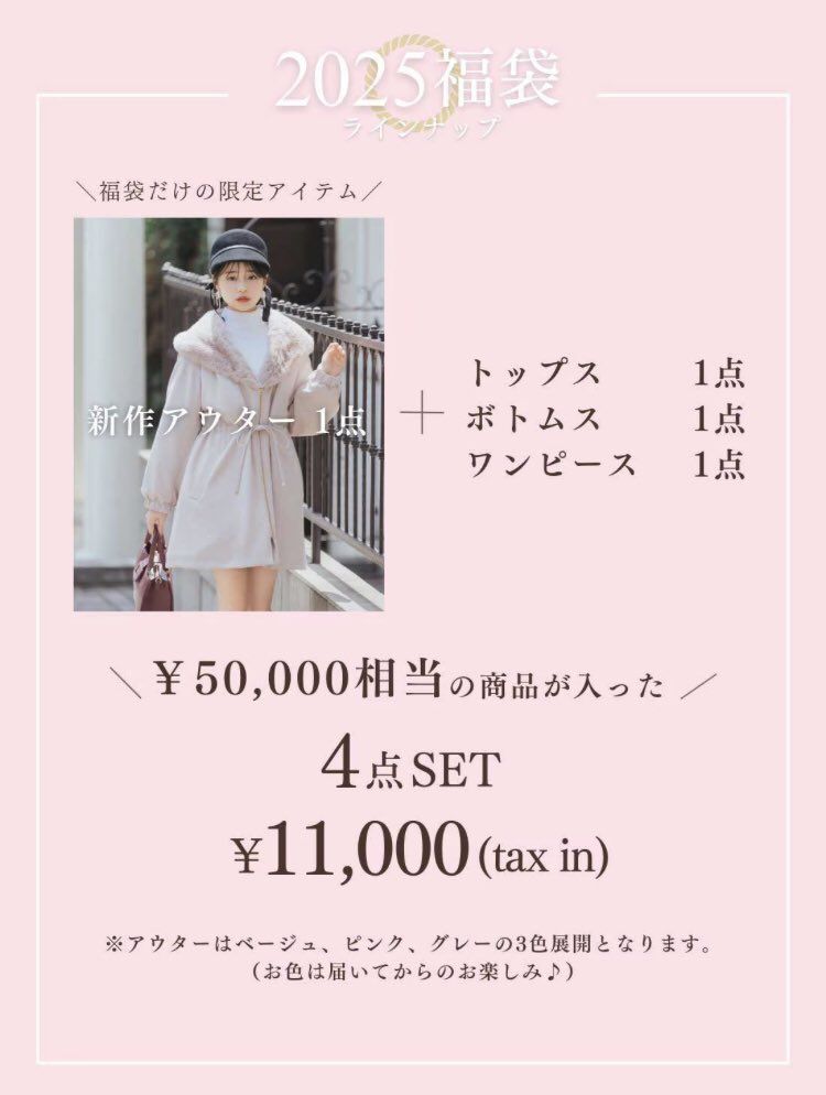 コート・ニットワンピース・キャミワンピース・お楽しみ2点の計5点がオリジナルバッグに入っています💓