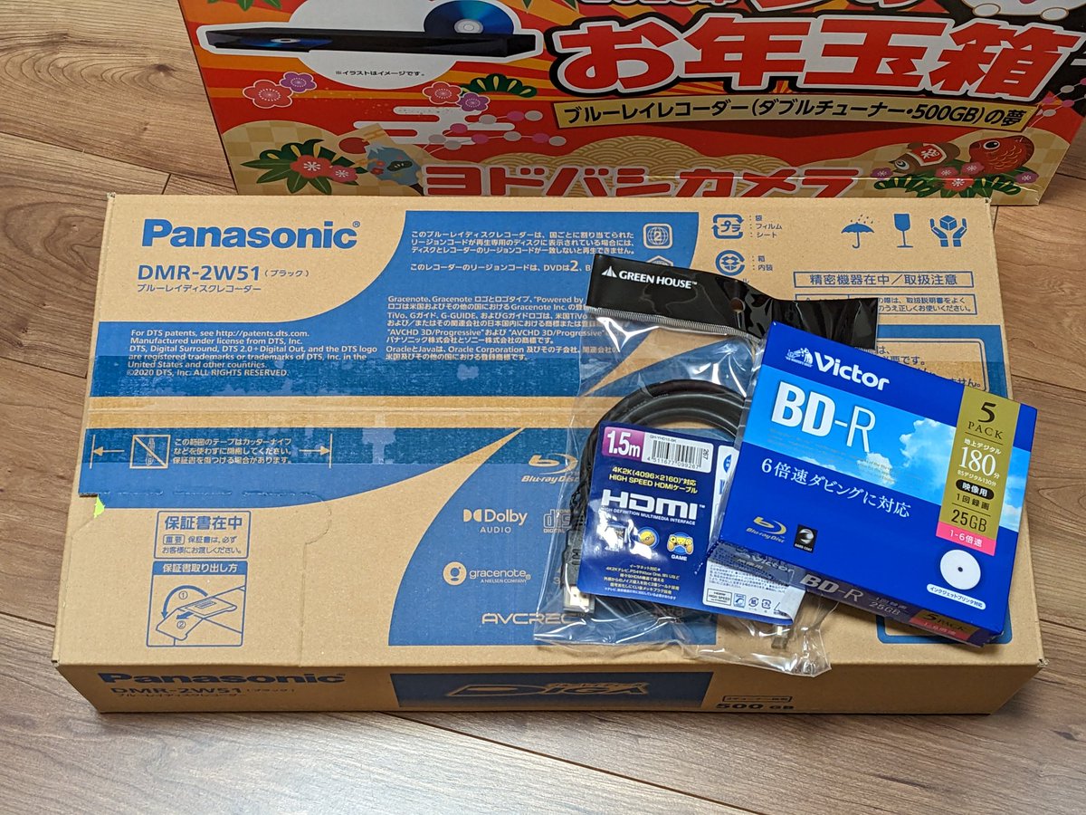 ヨドバシカメラ夢のお年玉箱2023 ブルーレイレコーダー(ダブルチューナー・500GB)到着