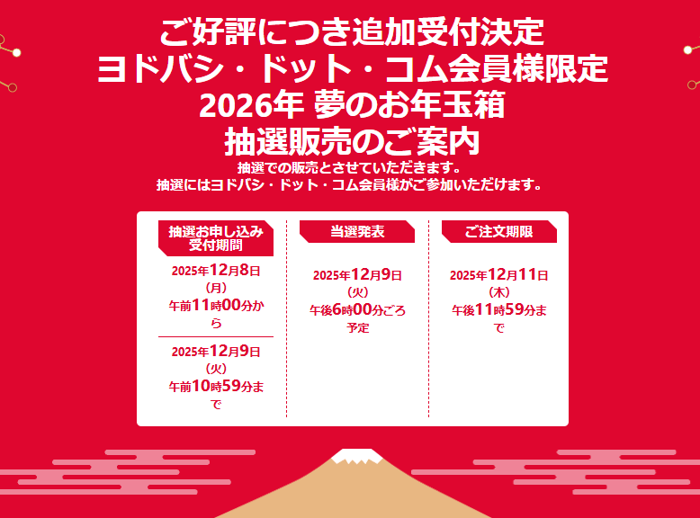ご好評につき追加受付決定ヨドバシ・ドット・コム会員様限定2026年 夢のお年玉箱抽選販売のご案内