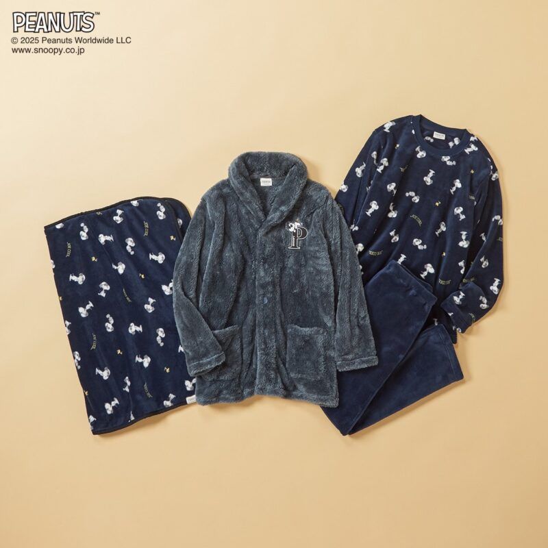内容:ルームウェア上下セット、ルームジャケット、ブランケットの計3点セット。人気キャラクター「スヌーピー」のくつろぎに最適なあったかルームウェアセットです。