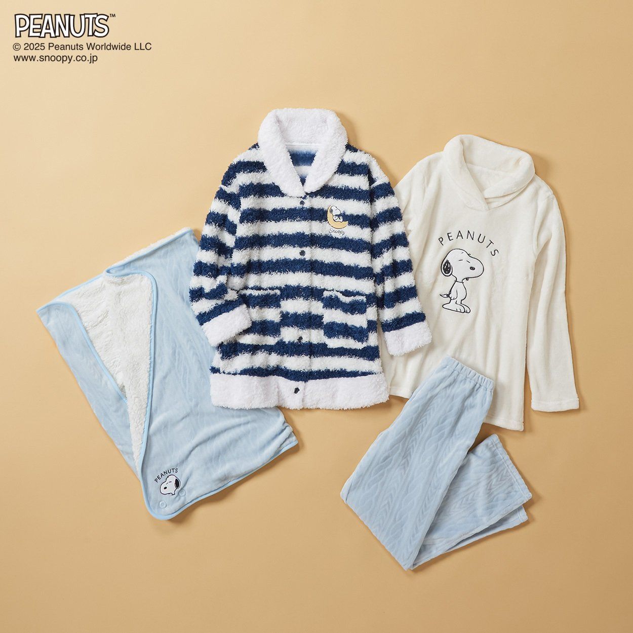 内容:ルームウェア上下セット、ルームジャケット、ブランケットの計3点セット。人気キャラクター「スヌーピー」のくつろぎに最適なあったかルームウェアセットです。