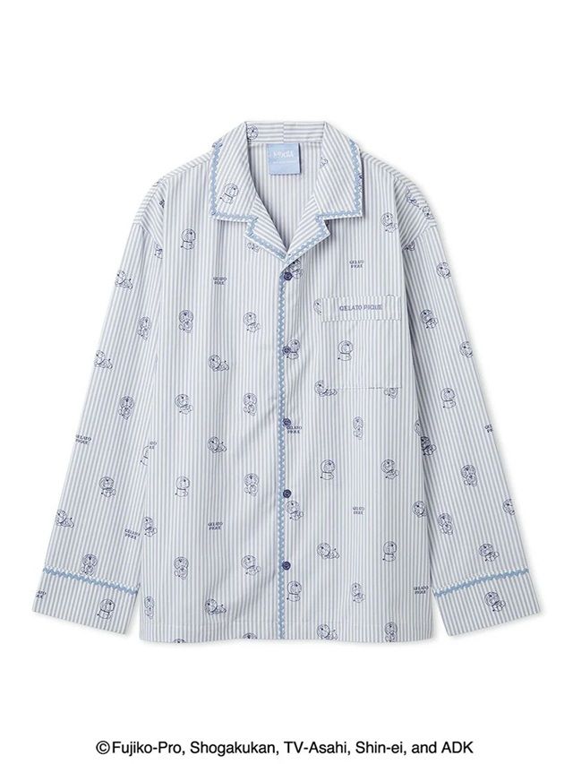 ハッピーなにこにこ顔やプンプン怒った顔、涙がこぼれそうなうるうる顔まで。ドラえもんとドラミの豊かな表情を描いたオリジナルアートが、喜怒哀楽いっぱいの毎日に寄り添う『ドラえもん』シリーズ第2弾。色んな表情のドラえもんを、gelato piqueらしい柄に落とし込んだメンズサイズの布帛シャツです。ドラえもんはストライプ柄にキャッチーな波テープをあしらったデザインに。胸ポケットのロゴ刺繍や、色を効かせたピスネームもさりげないポイントです。お揃いのロングパンツや同シリーズのカーディガンと合わせたり、 レディースとのペア・コーディネートもお楽しみいただけます。
