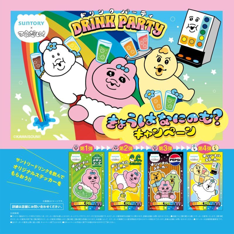 銀だこ×可哀想に!「おぱんちゅうさぎ」「んぽちゃむ」コラボ!サントリーの対象商品でステッカーおまけがもらえるキャンペーンが2025年10月20日(月)よりスタート!