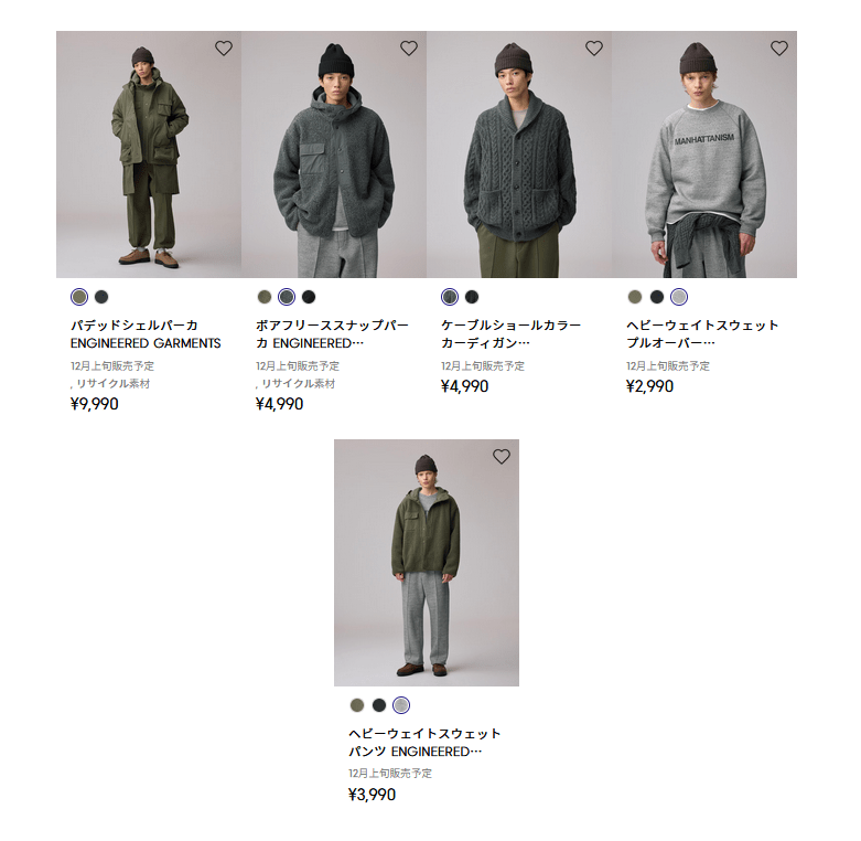 GU(ジーユー)『ENGINEERED GARMENTS(エンジニアド ガーメンツ)』コラボ!パーカ、カーディガン、プルオーバー、スウェットパンツが2025/12/5より新発売!再販売は?