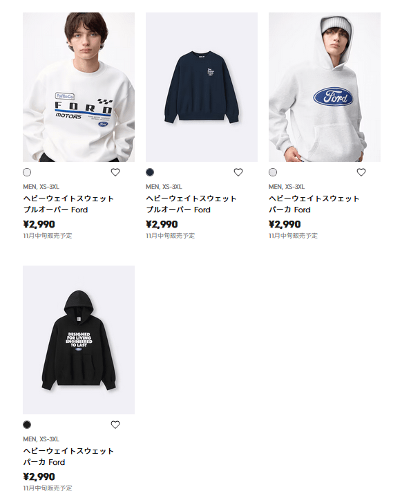 GU(ジーユー)『Ford(フォード)』コラボのトレーナー、パーカが2025年11月に新発売!