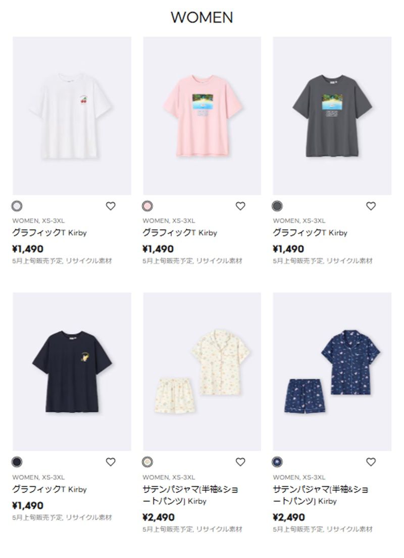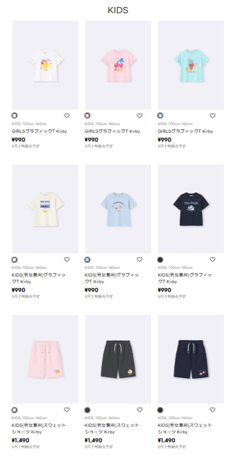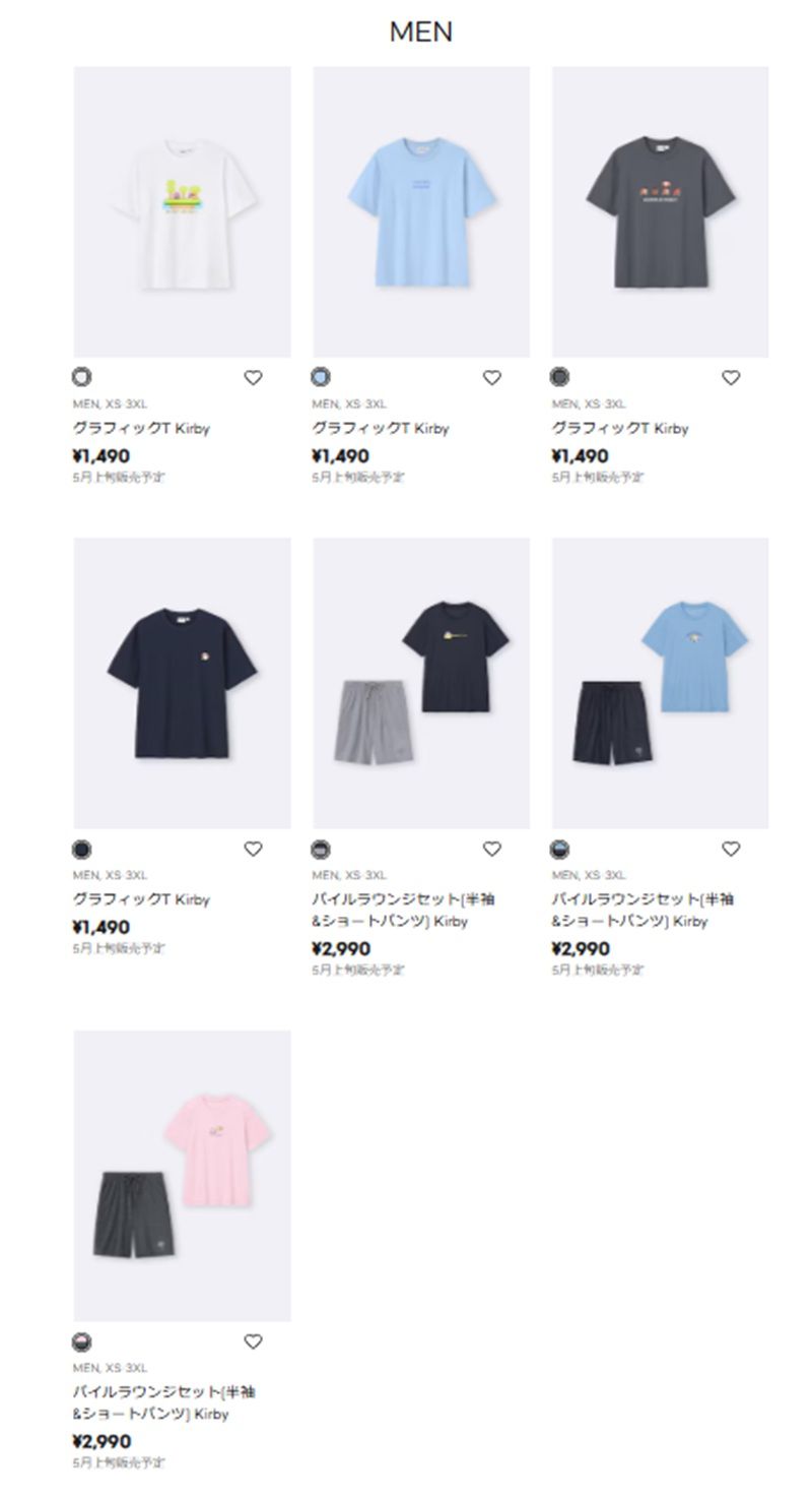 ≪商品ラインナップ≫GU(ジーユー)『星のカービィ』2026年夏