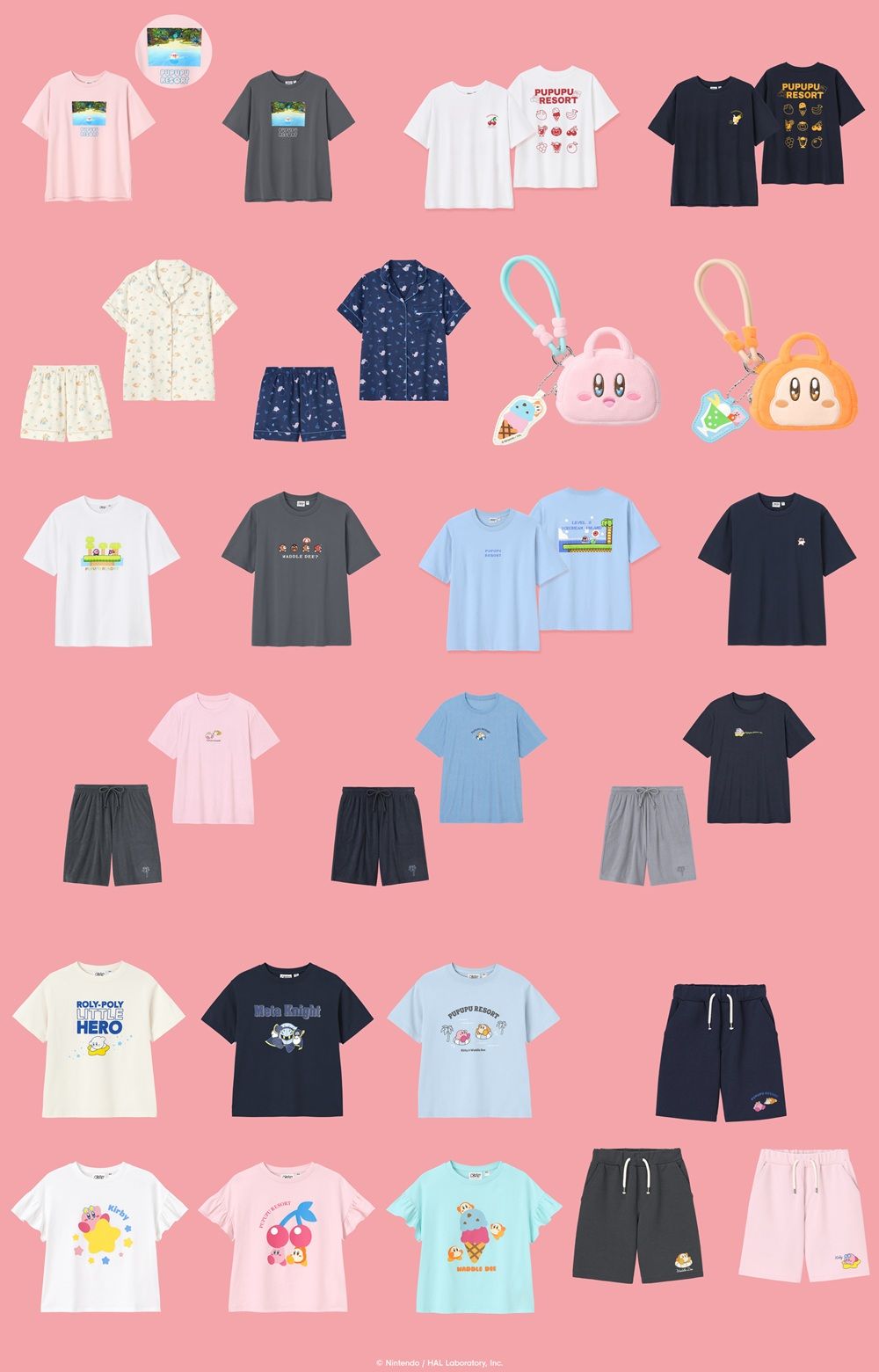 今回のコレクションは、“「プププリゾート」であきれかえるほど平和なリゾート気分を楽しもう!”をテーマに、リゾートを満喫するカービィやワドルディたちのデザインがポイントの T シャツや、おうちの中でも楽しめるラウンジウェアなど、多数のアイテムが展開!