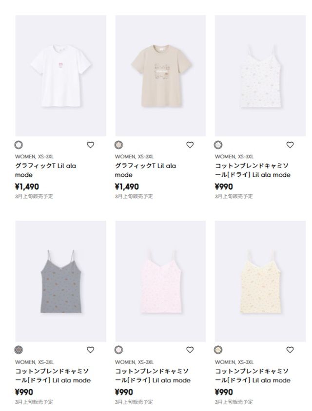 GU(ジーユー)『Lil ala mode(リルアラモード)』コラボ!Tシャツ、キャミソールが2026年3月2日(月)より新発売!