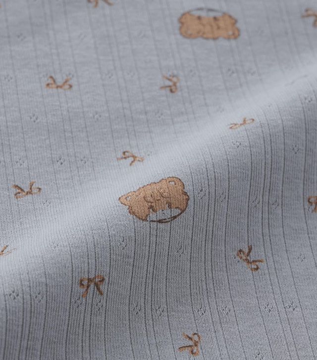本当は甘えん坊な、優しくて頼れる子ぐまのラテとリボンの総柄デザイン。