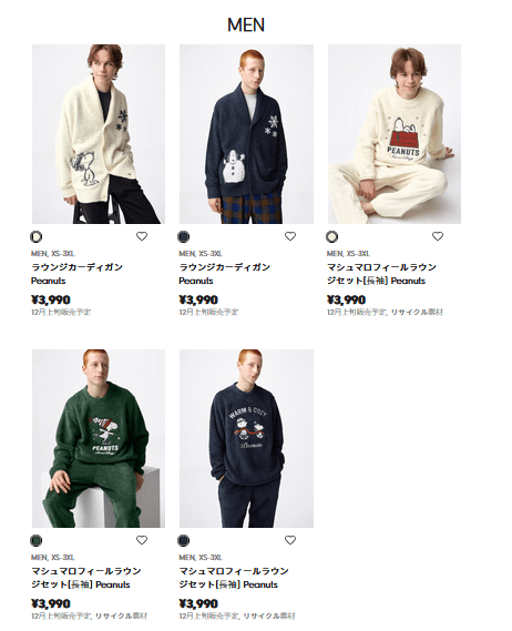 ≪商品ラインナップ≫GU(ジーユー)『スヌーピー(PEANUTS)』コラボ2025年冬