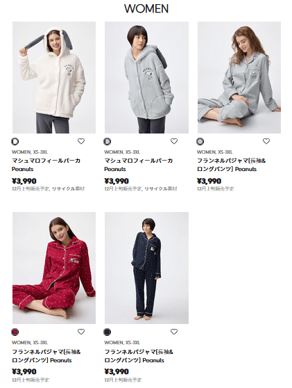 GU(ジーユー)『スヌーピー(PEANUTS)』コラボ!2025年冬のラウンジウェア!パーカ、パジャマが新発売!