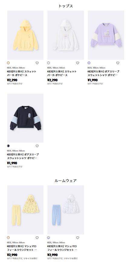 ≪商品ラインナップ≫GU『ポケモン/ポケピース』2025年冬