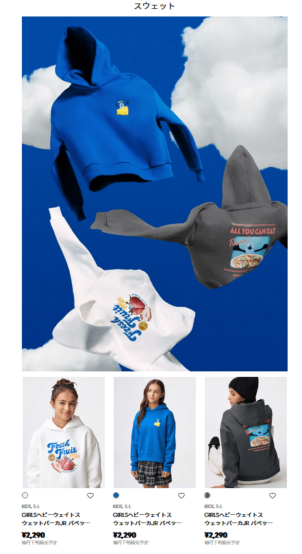 パペットスンスンの魅力をレトロでポップなムードに落とし込んだコレクションとなっており、ウィメンズ7型、ティーン4型の計11型が10月31日より全国のジーユー店舗およびオンラインストアで販売開始します!