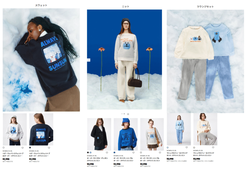 GU(ジーユー)『パペットスンスン』コラボが2025年秋冬で新発売!オンライン先行予約も!種類、値段、販売方法、再販売、口コミまとめ!トレーナー、ニット、パジャマ、ポーチ、ソックスも!レディースの大きいサイズはメンズにも!