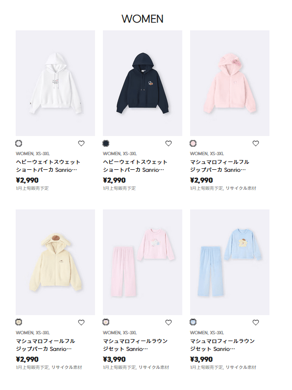 GU(ジーユー)サンリオ ハローキティ、ポムポムプリンのコラボが2026年初売りより新発売!パーカ、耳付きパーカ、ラウンジセット(ルームウェア)、トレーナーも!種類、口コミ、販売方法!オンライン販売開始時間は?