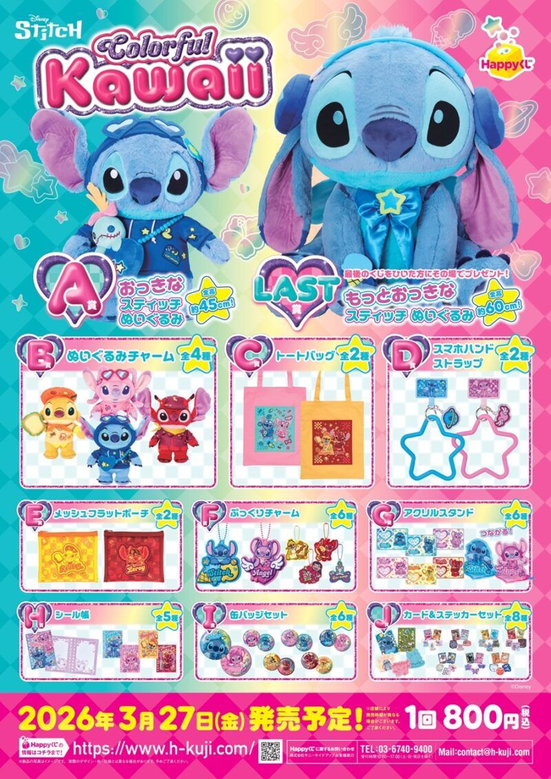 Happyくじ『Stitch Colorful Kawaii』が2026年3月27日(金)よりファミマ、ローソンなどで新発売!
