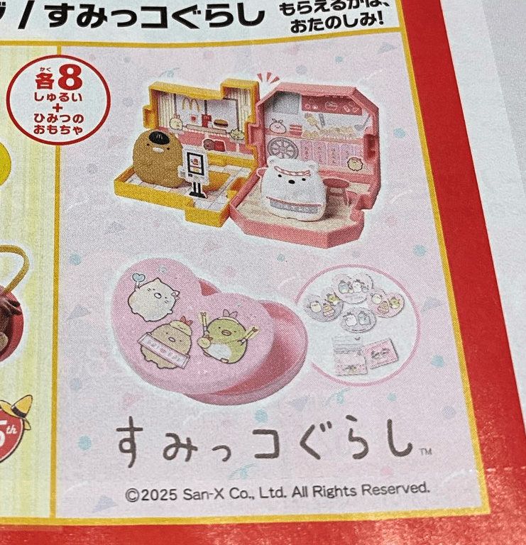 すみっコぐらし!マックのハッピーセット2025年12月おもちゃが登場!全9種類でシークレット(ひみつのおもちゃ)も!口コミ、識別番号まとめ!第1弾は12月12日より!