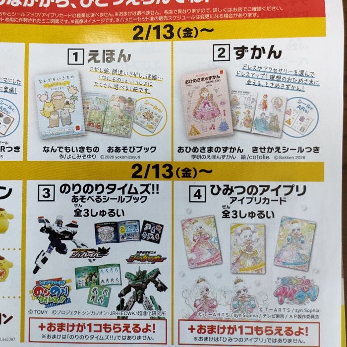 のりものタイムズ‼シンカリオン、ジョブレイバー!マックのハッピーセット2026年2月おもちゃが登場!あそべるシールブックが全3種類!種類、口コミ、識別番号まとめ!2月13日より!