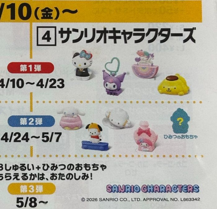 サンリオ!マックのハッピーセット2026年4月おもちゃが登場!全9種類でシークレット(ひみつのおもちゃ)も!種類、口コミ、識別番号まとめ!