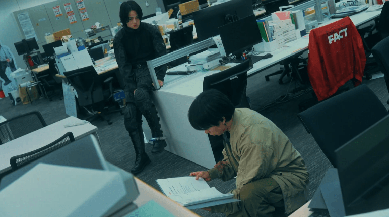 武蔵の見つけた資料より、当時ニュースファクトに情報提供した岩黒のもとへ、天草が向かい聞き取りを行う。