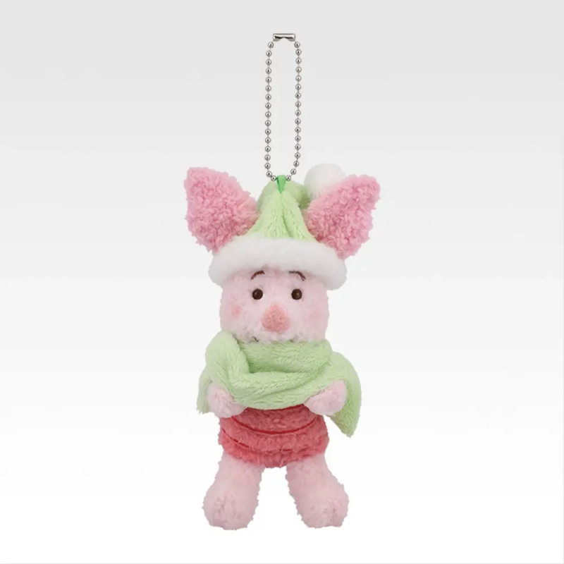 あたたかそうなマフラーと帽子を身に着けたピグレットのかわいらしいぬいぐるみマスコットです。マフラーをきゅっと握りしめているかわいらしいポーズにも注目です♪