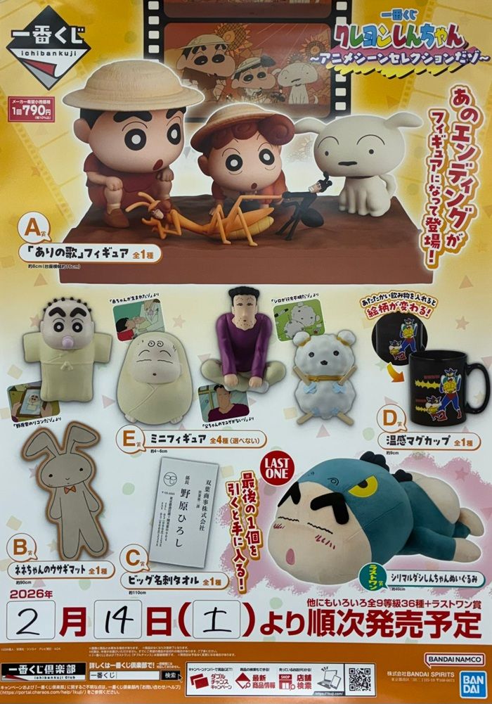 一番くじ クレヨンしんちゃん~アニメシーンセレクションだゾ~が2026年2月14日(土)より新発売!