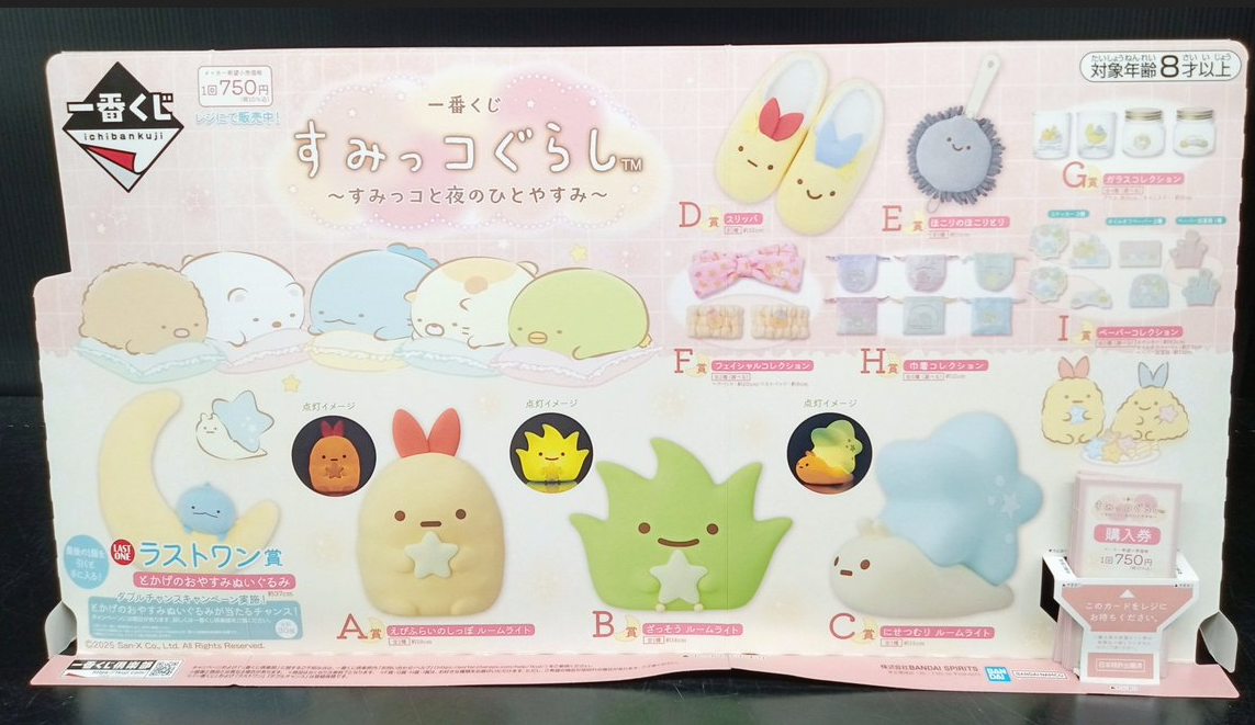 ■取扱店:ファミリーマート、ミニストップ、デイリーヤマザキ、その他コンビニエンスストア、すみっコぐらしショップ(一部の店舗を除く)、書店、ホビーショップ、一番くじ公式ショップ、一番くじONLINEなど