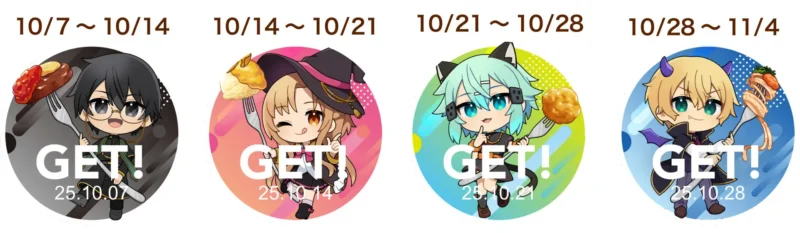 ※コラボ限定デザインスタンプはキャンペーン終了後、11月4日(火)18時以降は、キャラクターのイラストが表示されないものへと変更されます。