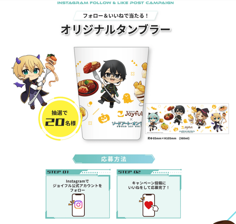 ジョイフル「ソードアート・オンライン(SAO)」コラボキャンペーン 販売方法、発売場所、通販開始時間