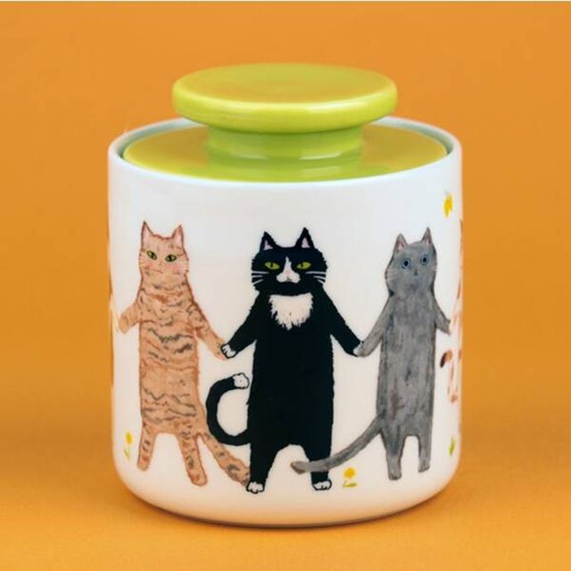 今日はかわいい猫が描かれたキャニスター型のポットを購入。