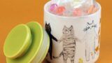 猫柄の陶器製キャニスターに、カラフルなキャンディを詰め込みました。レモン、オレンジ、グレープ、ストロベリー、ピーチの5種類の味わいがランダムに15個入り。