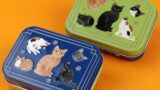 ポーズがかわいい猫のイラストが入ったミニ缶にキャンディを詰めました。