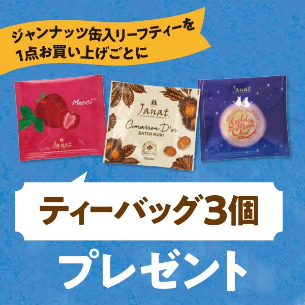 フランスの紅茶ブランド「ジャンナッツ」のクリスマス限定ブレンドです。ドライアップルやハート型のシュガーを散りばめ、華やかな味わいに仕上げました。