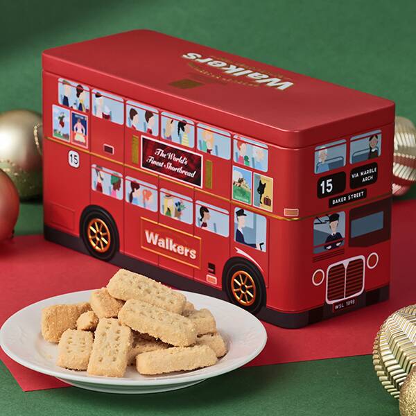 赤いタータンチェック柄のパッケージで有名なウォーカー(Walkers)のクリスマス限定ショートブレッドです。ロンドンの観光名物である2階建てバスに、ショートブレッドフィンガーを詰め合わせました。