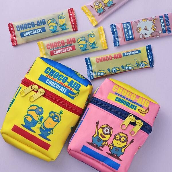 チョコエイドシリーズにミニオンが新登場!ポーチの中にはばんそうこうの形をしたバナナチョコレートが5枚入っています。デザインは2種類