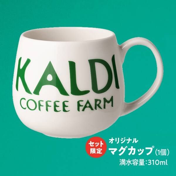 今年のマグは丸みを帯びた可愛らしいシルエットはそのままに、ロゴカラーはグリーンになりました。チョコレートとの相性を考えて生まれたブレンドコーヒー「KALDI’Sエンジェル」は、ほんのりビターな味わいとフワッと香る甘い印象が特徴の中深煎りのコーヒー。ご一緒にお届けする「カシューナッツチョコレート」は、キャンディコーティングしたカシューナッツをミルクチョコレートで包み、ほろ苦いココアパウダーをまとわせました。コーヒーと相性抜群のセットです。ギフトにもどうぞ。