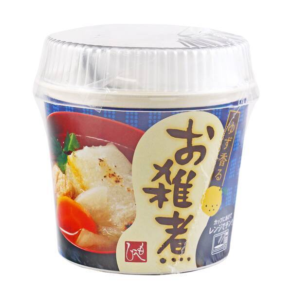 九州産ブランド鶏「華味鳥」を使用したつくねと、大根・白菜・人参・椎茸が入った具沢山のお雑煮です。だし汁は鶏がらスープをベースに昆布出し汁、ゆずの香りをほんのりきかせ上品な味わいに仕上げています。電子レンジ調理でお手軽にお召し上がりいただけます。