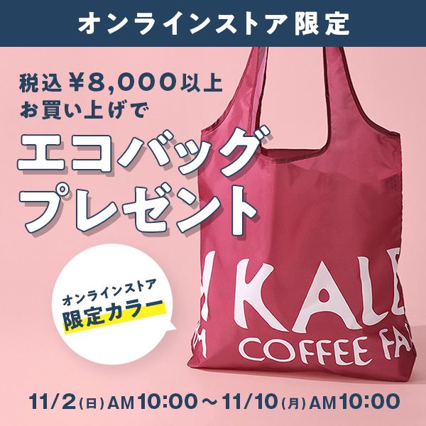 ・商品代金の合計金額が6,000円(税込)以上のご注文1件につき、先着でオンラインストア限定カラーのオリジナルエコバッグを1点プレゼントいたします。