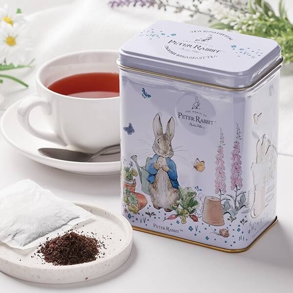 ピーターラビットの世界観が表現されたまるで絵本のような紅茶缶です。イングリッシュ・ブレックファストのティーバッグが40袋入っています。