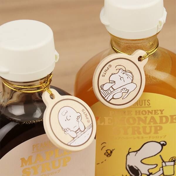 カナダ・ケベック州産の100%ピュアメープルシロップです。パンケーキにかけるのはもちろん、シリアルにかけたり、コーヒーや紅茶に入れたりと、楽しみ方はさまざま。思わず集めたくなる木のぬくもりのあるスヌーピーのチャーム付き。