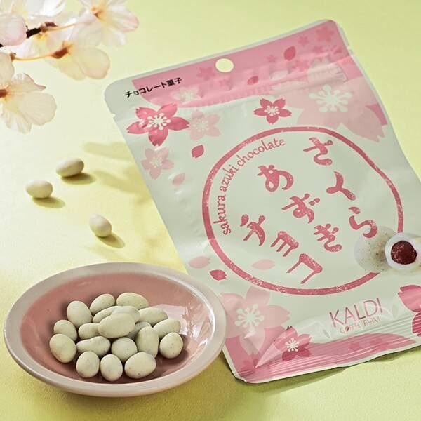 北海道十勝産あずきをふっくらやわらかい甘納豆にし、やさしくホワイトチョコでコーティング。さくら餅をイメージしたほんのりしょっぱいさくら葉パウダーで仕上げました。